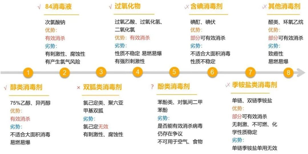 据邓旭东介绍,目前能有效作用于新冠病毒的消毒剂中,75%乙醇等醇类消毒剂易燃易爆,不适合大面积消毒;84消毒液有刺激性和腐蚀性;氯己定不能有效灭活新冠病毒;过氧化物、酚类消毒剂、含碘消毒剂等也分别存在性质不稳定、易燃易爆、不能大面积消毒等局限性。